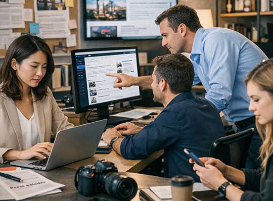 Corpis is an enterprise CMS that manages press releases, magazines, social media content, and announcements as distinct newsroom data structures.